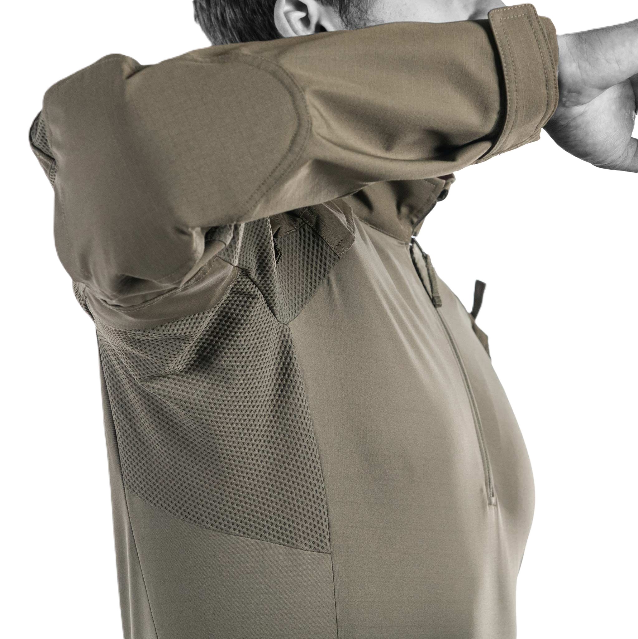 Hybridimateriaalin ansiosta kehon lämpötila säätyy tehokkaasti ja käyttömukavuus on taattu koko päiväksi. Lisäksi tässä taistelupaidassa on yksityiskohtia, jotka parantavat suorituskykyäsi operaattorina.