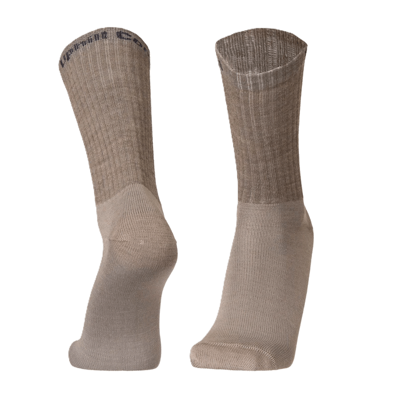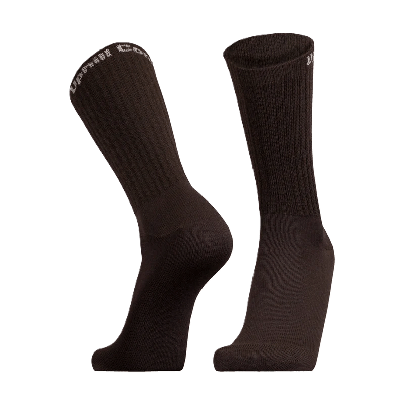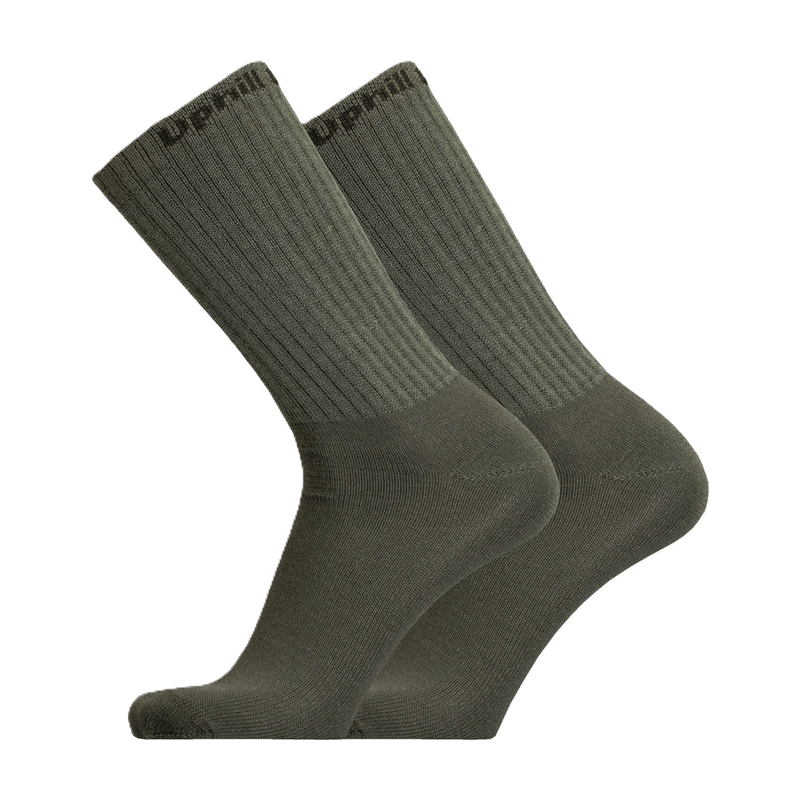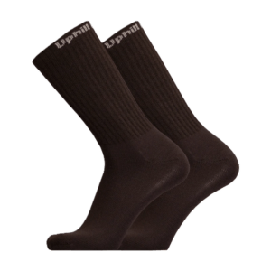 Yksivärisien sukkien suuaukon ulkopuolelle on neulottu Uphill Combat -teksti. Varsi on normaalin urheilusukan varren mittainen ja hyvin joustava.